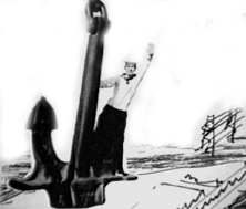 een kabel liep van de wal naar de pakhuizen. Hij koppelde